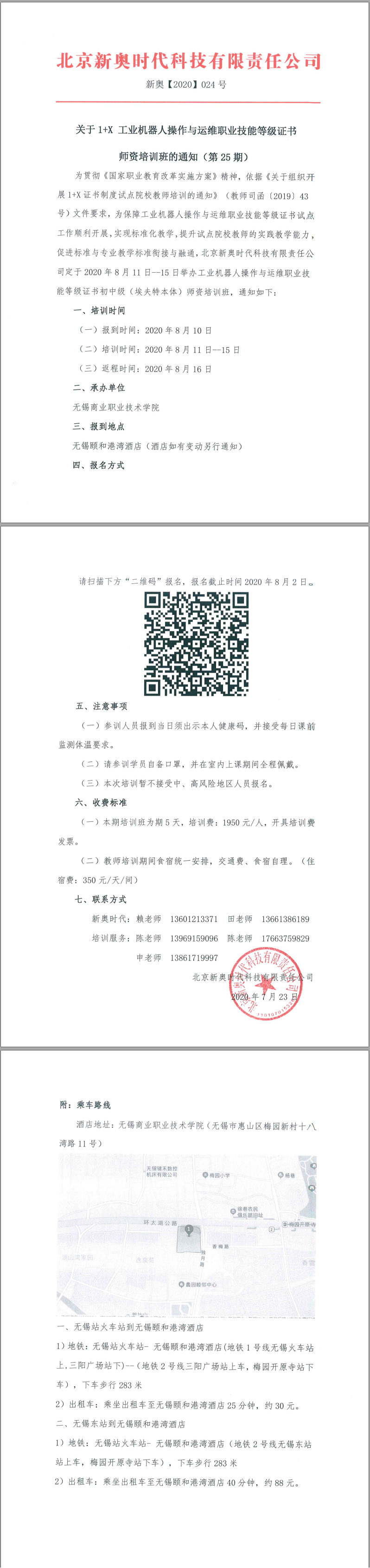 關(guān)于舉辦第25期工業(yè)機器人操作與運維職業(yè)技能等級證書師資培訓(xùn)班的通知(埃夫特)