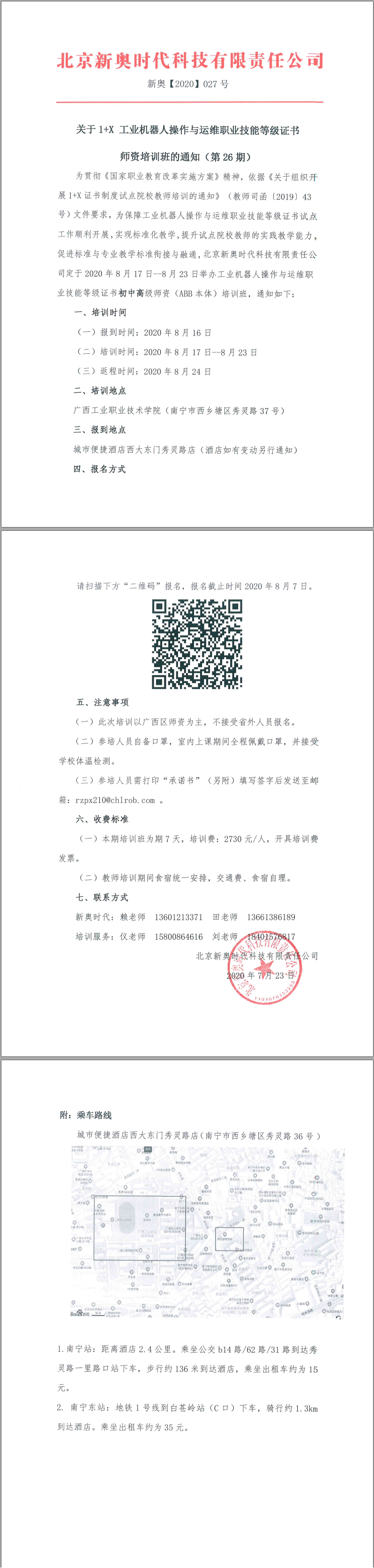 關(guān)于舉辦第26期工業(yè)機(jī)器人操作與運(yùn)維職業(yè)技能等級(jí)證書師資培訓(xùn)班的通知(ABB)